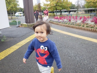 今日は朝まで雨が降っていたので遊具も築山登りもできなかったのでお散歩してきました。